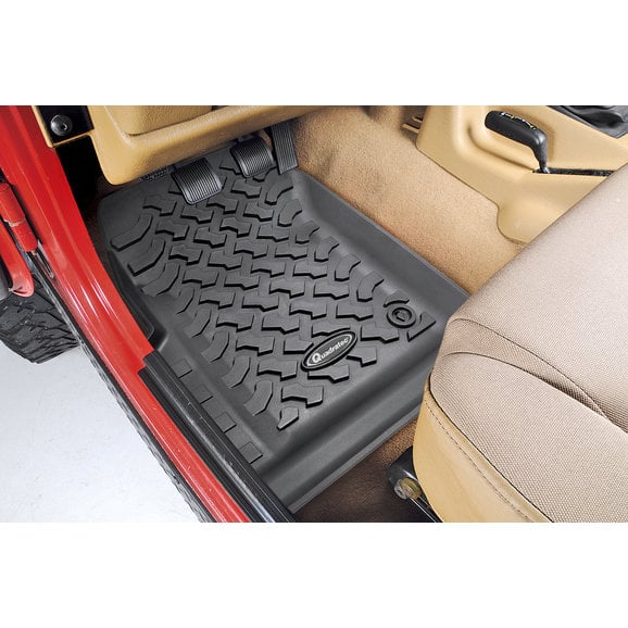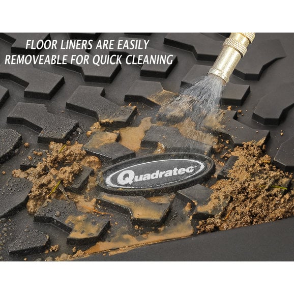 Presenting the only Floor Liners good enough to bear the Quadratec name! Our Ultimate Floor Liners are affordably priced and are cleverly designed to feature the best Limited Lifetime Warranty in the business! Our Essential® Floor Liners for Wrangler provide ultimate floor protection for active lifestyles, and are engineered with the finest materials for total protection against water, snow and mud. Our Ultimate Liners follow the exact contours of the floor pan and fit like a glove and feature a Unique tread pattern that is Exclusive to Quadratec. Extra tall sides and 5/16" deep tire tread pattern contain water and debris - keeping your footwear clean and dry. Made from tough thermoplastic rubbers that are both chemical & stain resistant. Our Ultimate Liners are