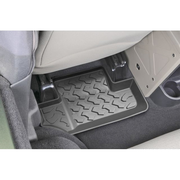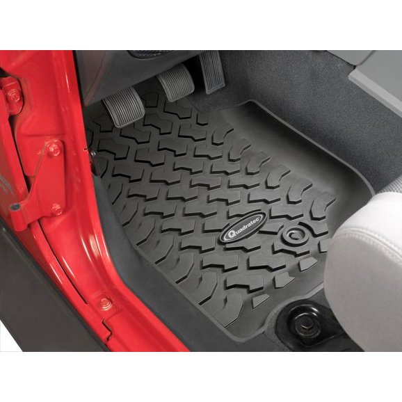 Presenting the only Floor Liners good enough to bear the Quadratec name! Our Ultimate Floor Liners are affordably priced and are cleverly designed to feature the best Limited Lifetime Warranty in the business! Our Essential® Floor Liners for Wrangler provide ultimate floor protection for active lifestyles, and are engineered with the finest materials for total protection against water, snow and mud. Our Ultimate Liners follow the exact contours of the floor pan and fit like a glove and feature a Unique tread pattern that is Exclusive to Quadratec. Extra tall sides and 5/16" deep tire tread pattern contain water and debris - keeping your footwear clean and dry. Made from tough thermoplastic rubbers that are both chemical & stain resistant. Our Ultimate Liners are injection molded for a precision fit and are double the thickness and weight of most others. Tested to sub-freezing temperatures and 100+ degrees Fahrenheit, Our Liners will not crack, melt or warp with temperature. Our liners also feature nibbed bottoms and carpet hook retention that keeps them safely in position with easy removal for cleaning.