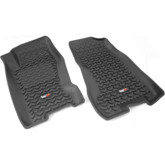 Rugged floor liners from Rugged Ridge. Precision engineering using state of the art technology ensures an exact fit to the shape and contour of your vehicle's floor. The deeply molded Chevron-shape tread pattern channels dirt, mud and snow away from the driver to keep shoes and pant legs clean. It also contains the movement and sloshing around of any trapped water. The high perimeter wall offers a large footprint and maximum interior protection and containment.