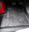 Rugged floor liners from Rugged Ridge. Precision engineering using state of the art technology ensures an exact fit to the shape and contour of your vehicle's floor. The deeply molded Chevron-shape tread pattern channels dirt, mud and snow away from the driver to keep shoes and pant legs clean. It also contains the movement and sloshing around of any trapped water. The high perimeter wall offers a large footprint and maximum interior protection and containment.