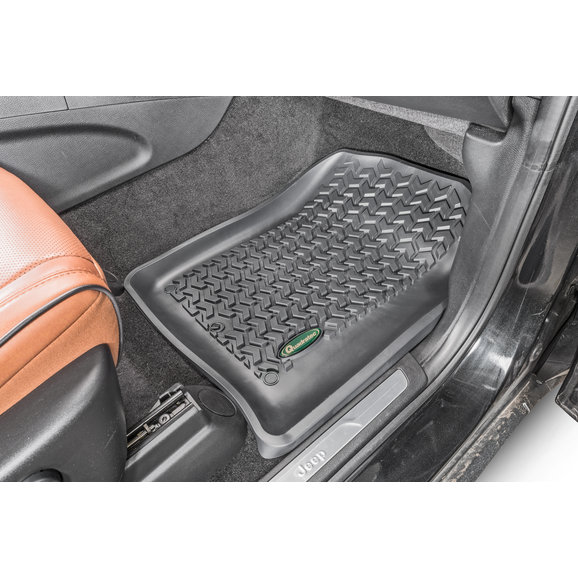 Presenting the only Floor Liners good enough to bear the Quadratec name! Our Ultimate Floor Liners are affordably priced and are cleverly designed to feature the best Limited Lifetime Warranty in the business! Our Essential® Floor Liners for Wrangler provide ultimate floor protection for active lifestyles, and are engineered with the finest materials for total protection against water, snow and mud. Our Ultimate Liners follow the exact contours of the floor pan and fit like a glove. Extra tall sides and 5/16" deep tire tread pattern contain water and debris - keeping your footwear clean and dry. Made from tough thermoplastic rubbers that are both chemical & stain resistant. Our Ultimate Liners are