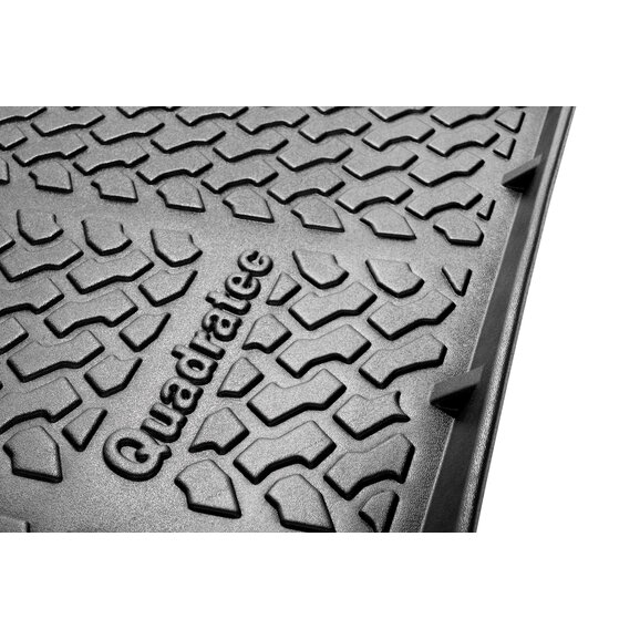 Presenting the only Floor Liners good enough to bear the Quadratec name! Our Ultimate Floor Liners are affordably priced and are cleverly designed to feature the best Limited Lifetime Warranty in the business! Our Essential® Floor Liners for Wrangler provide ultimate floor protection for active lifestyles, and are engineered with the finest materials for total protection against water, snow and mud. Get complete protection for your carpeting with our Essential Cargo Liners. Our exclusive liners feature 2" tall edges that contain big spills, messy cargo and feature a Unique tread pattern that is Exclusive to Quadratec. Engineered for a custom fit and warranted for life. Extra tough Thermoplastic Olefin construction is chemical and stain resistant and are quickly removable for cleaning. Thick and durable design provides guaranteed floor protection when hauling building materials, gardening supplies, the weekly groceries or a wet dog. This rear cargo area liner is designed to fit the Wrangler JK 2 door with the rear seat removed. For 2 Door Jeeps with the rear seat installed, please see our Recommended Items section for the 2 Door Behind the Seat Cargo Liner. The shallow textured tire tread pattern helps keep cargo from shifting