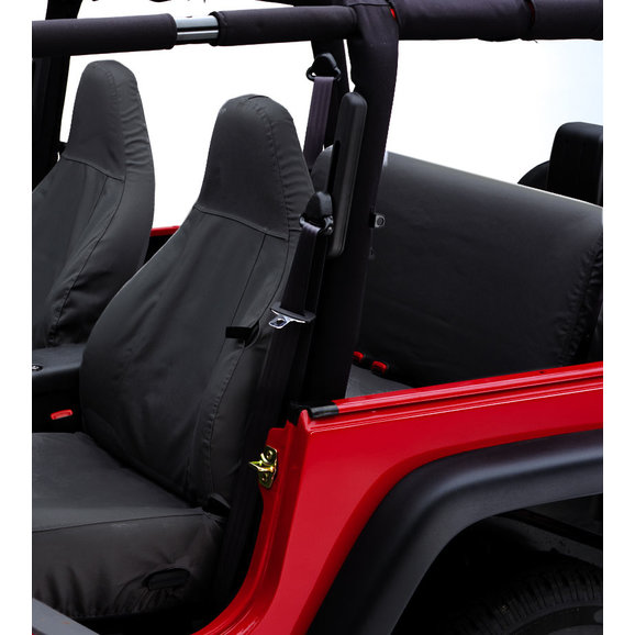 Custom fitted, slip-on & slip-off protection from everyday abuse. Keep your seats looking new with SeatSaver seat protectors. Custom patterned, they easily slip on to provide quick protection from sun, dirt, sand, or daily abuse. Breathable, heavy duty polycotton fabric won't give you that "sticky" feeling that other seat covers can. You can go anywhere in comfort and still remove SeatSavers for cleaning. Just throw them into your washer and dryer and then slip them back on. For factory non-reclinig seats. The fabric is protected with a durable water repellent finish that blocks mud, grease and beverage accidents from reaching the seats. SeatSavers also block UV rays to help protect original seat upholstery. Available in Gray, Tan or Black.