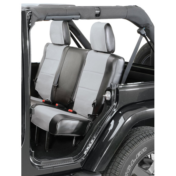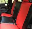 Seat covers look just like the picture. Fits well, looks great and really adds an upgraded look to my jeep! The only slightly negative feedback I have is that there were no open slits for the backseat lever to go thru for letting the seats down. It's in the stock photo but it wasn't in the ones that were sent to me. Other than that, great product!