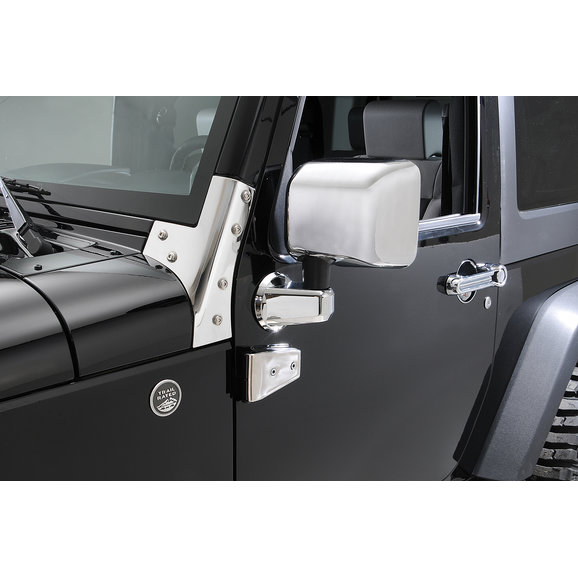 Give your JK Wrangler a unique look with these mirror and arm covers. Available in pairs as mirror covers, just the arms or a kit for both. Made from chrome plated ABS plastic, these pieces are an easy install, using pre-applied double-sided tape.