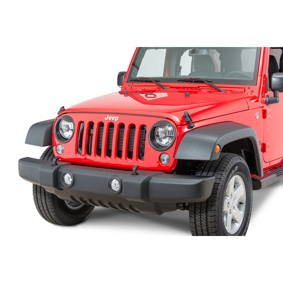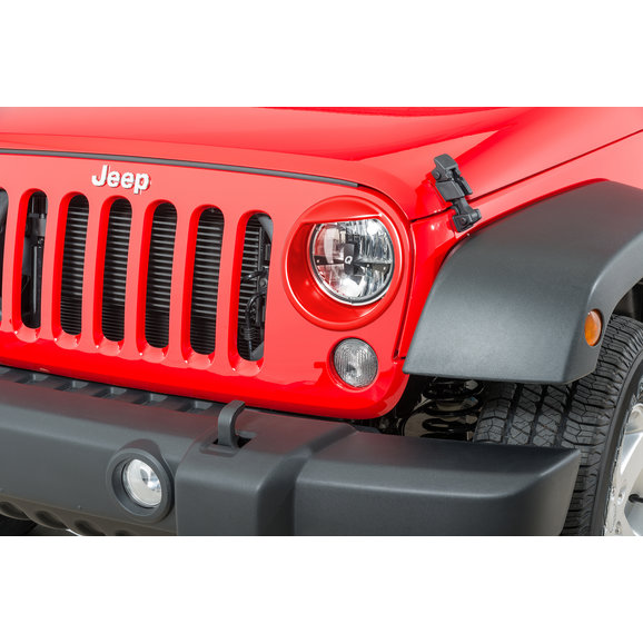 Transform your Wrangler grille with our Headlight Eyebrow Trim Rings. These are style action headlight bezels giving your Jeep the look of determination that says it can go anywhere. Rotate brows horizontally for a subtle muscle look or rotate brows to a V shape for an aggressive look of determination. Made of virgin ABS plastic with satin black Korad finish for 100% UV protection. This timeless west coast classic is custom molded for JK and installs in less than 5 minutes with 3M UHB (ultra high bond) automotive tape. Just place and peel! Self alignment feature makes it easy to position around the headlight and can be clocked as much as 1" either way to adjust the intensity of the look. Can be painted with our complete selection on Mopar factory match spray paints. Sold in pairs. Beautifully engineered and made in USA.