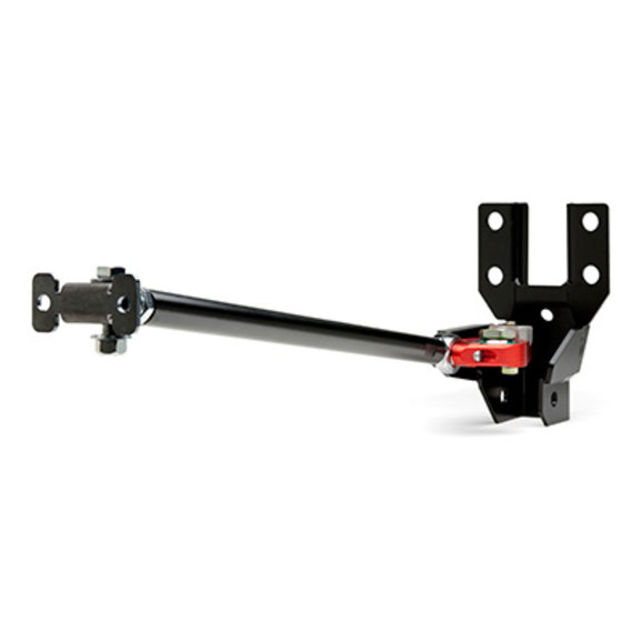The Sector Shaft Brace mounts directly to our Front Trackbar Chassis Brace using premium grade hardware. This rigidly secures the sector shaft to the left frame rail and locks it in position. It also attaches to the inner chassis rail via a weld-on mounting fixture. And finally, the Sector Shaft Brace attaches to our tubular Front Chassis Brace Connector which crosses over to the right frame rail. With the Sector Shaft Brace securely connected to both chassis rails, the vehicle becomes more responsive to steering input and the driver notices a better sense of control through the steering wheel.