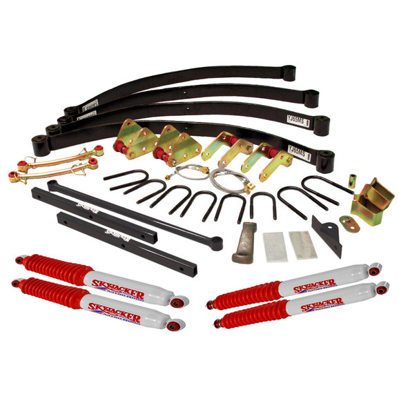 - Included Parts: Extended Brake Lines, Front Track Bar, Pitman Arm, Rear Track Bar Bracket, Shackles, Sway Bar Endlinks, Transfer Case Lowering Kit, U-Bolts