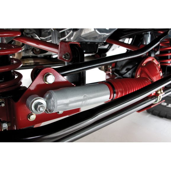 High clearance stabilizer above the factory center link out of harms way helps reduce wheel shimmy and tire wear on vehicles with over-sized wheels and tires kit will assist with reducing bump steer and vibration.