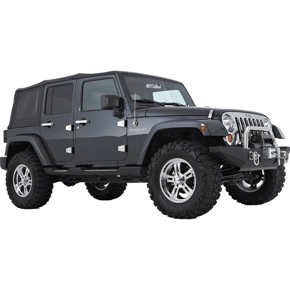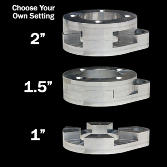 Lets face it, a Jeep just doesn't look right unless it has aggressive off road terrain tires to go with that great Jeep off road look. ReadyLift's new 66-6095 Jeep JK suspension products deliver several lift options. The new 3-in-1 adjustable height coil spring lift spacers allows you to select the height of front end lift that you want. Machined from 6061-T6 billet aluminum and featuring a Patent Pending unique design, you can choose adjustments from 1", 1.5" or 2" inches of lift to get the look you want. This is the perfect kit for Jeep owners who have installed a front winch or heavy front bumper by helping to bring the front end back up to where it belongs.