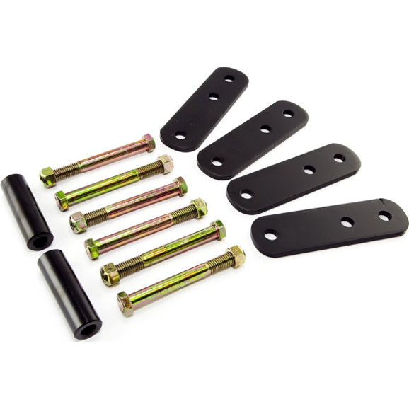 Heavy-duty shackle pair for 87-95 YJ front. Non-greaseable without bushings. Adds 1" lift.