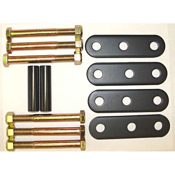 Heavy-duty shackles for leaf spring equipped vehicles. Sold in pairs. Available with or without bushings. Wrangler shackles provide 1" of lift. Available with greaseable bushings for a quiet ride and easier flexing .