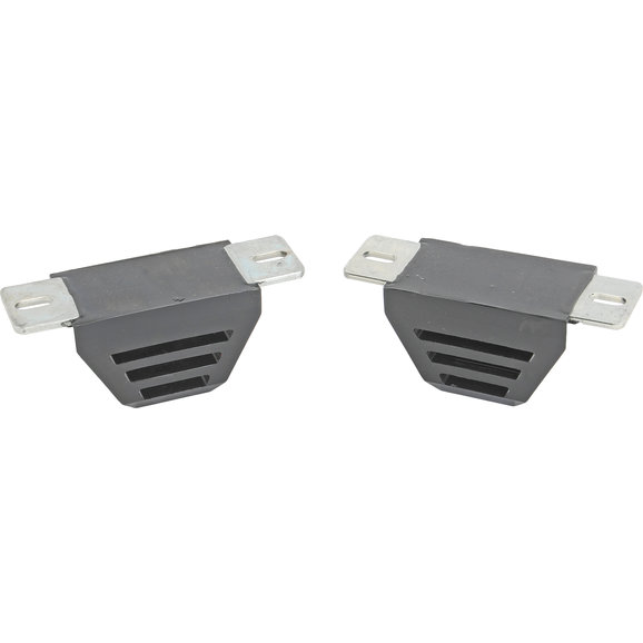 Purchased for my 1996 Jeep Cherokee 4x4. The original have a tenancy for the rubber to separate from the metal bracket. This happened on one side and when my wife hit the ditch on muddy roads she over stressed one rear spring causing the jeep to lean and body roll due to the weakened/damaged spring. These Daystar seem much more heavy duty. Fitment is an issue, the holes are not the same distance apart. I solved this by using a saber saw and sawing metal away up to the black neoprene. Then used a small drill bit to ensure the hole was rounded. Used a larger drill bit and made a 1/4 moon at the bolt site against the neoprene. Then used a 5/16" diameter Stainless Steel washer, original bolts (with anti-seize) and a deep well socket to re-attach to the frame rail. Worked great.