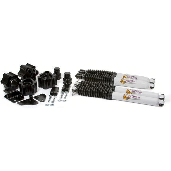 Daystar offers this economical way to add a 3 lift kit to your Wrangler without compromising the factory suspension ride quality and load carrying capacity. Lift height is achieved by Daystar's ComfortRideTM Suspension Coil Spring Spacer Kit coupled with their Scorpion Lift Shocks. These kits are made of high density progressive polyurethane and provides improved ground clearance to fit up to 35 inch tall tires. These complete kits includes all necessary brackets and hardware for a easy installation. Limited Lifetime Warranty.