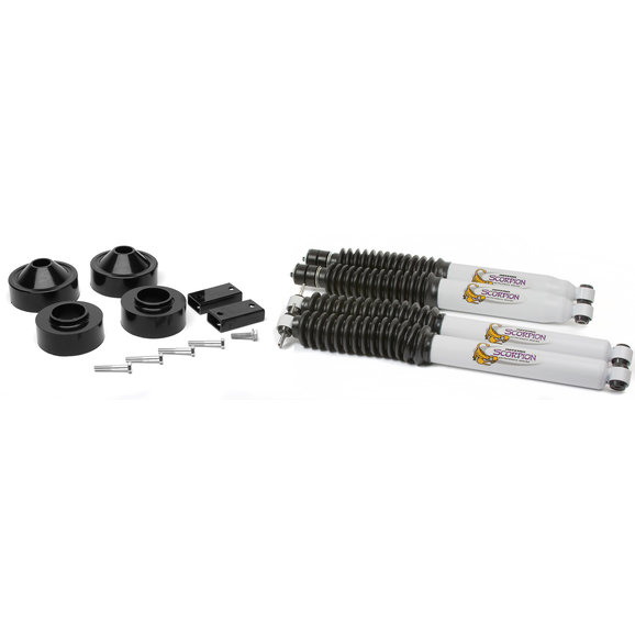 Daystar's legendary lift kits for JKs are now available with shock absorbers! These 1-3/4 Polyurethane spacer kits maintain factory ride quality (because the factory coil springs are retained) while providing room for larger tires and wheels. These kits, combined with Daystar's Scorpion Shock Absorbers, are an unbeatable value! Daystar's Scorpion shocks include black shock boots and feature a twin-tube design. Scorpion shocks are also valved specifically for each application. Though the shocks are not required with these lift kits, replacing the shocks will improve handling both on and off the road. All of Daystar's products are backed by a Limited Lifetime Warranty.