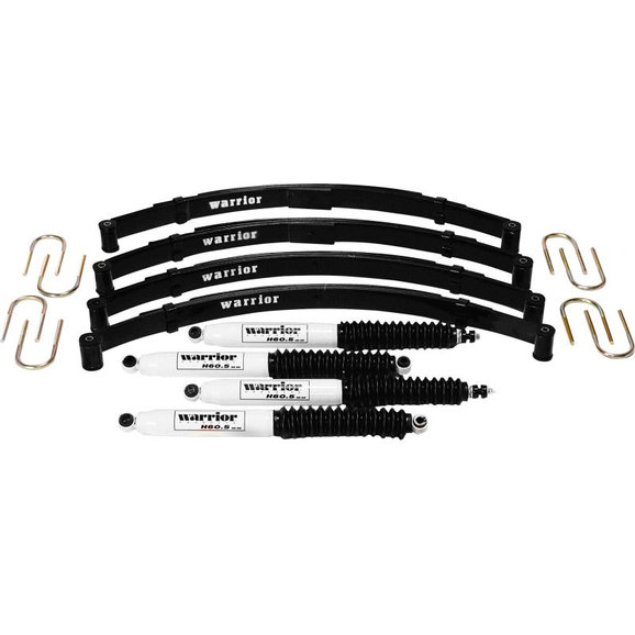 Warrior Products offers traditional leaf spring suspension systems for pre-TJ vehicles. Built to stringent standards for strength, performance and durability, every system comes with four H60.5mm shocks, featuring a nine-stage valve system, and a self-lubricating polished chrome piston. In addition to the shocks, durable leaf springs help provide a great ride. Kits are available in different lift heights for YJ Wranglers and Cherokees.