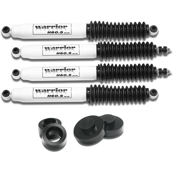 Warrior Products high performance suspension systems are built to stringent standards for strength, performance and durability. Every system comes with four H60.5mm shocks, featuring a nine-stage valve system, and a self-lubricating polished chrome piston. In addition to the shocks, durable coil springs help provide a great ride. Kits are available in different lift heights for TJ Wranglers.