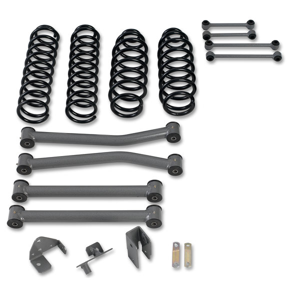 3" JK Lift Kit. Includes front and rear lower control arms, new coil springs, new swaybar endlinks, front and rear trackbar relocation brackets, rear brakeline extensions, optional shocks, and all mounting hardware.