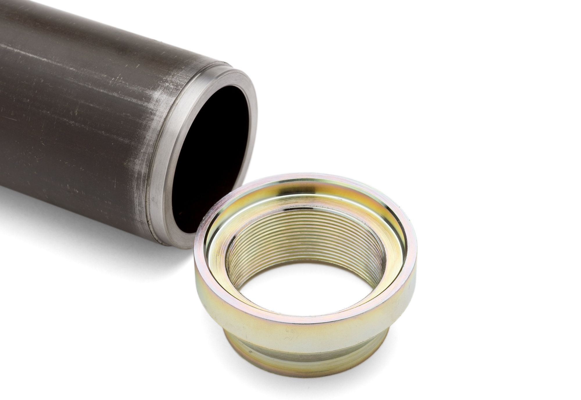 Designed to replace the factory rubber bump stops, Hydraulic BumpShocks are permanently welded to the chassis for an ultra-secure connection. Whereas our competitors provide a smooth exterior surface, Hydraulic BumpShocks exclusively feature an externally threaded body for positive no-slip mounting. The threaded body also allows the position of each BumpShock to be infinitely adjusted within the supplied mounting adapters. Once adjusted, a large locking ring secures the BumpShock in position and eliminates the possibility of unintentional adjustments from occurring.