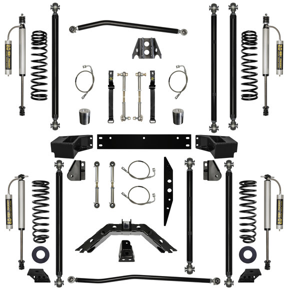 The JK 3.5" Off-Road Pro Long Arm System is a race inspired system designed to take abuse. As JK's get older in years, they are getting wheeled harder and harder. The Off-Road Pro Systems are designed to minimize wear points while taking that punishment! As few as possible OEM mounting points have been used with this system. All ends of the control arms feature our Pro Series Krawler Joints so there are no bushings to break down from punishment. The suspension geometry features our tried and true independent 3 link design front and rear. There are no natural binding points, so the suspension cycles perfectly smooth. No system on the market today is ready for racing or absolute punishment like our Off-Road Pro Long Arm System.