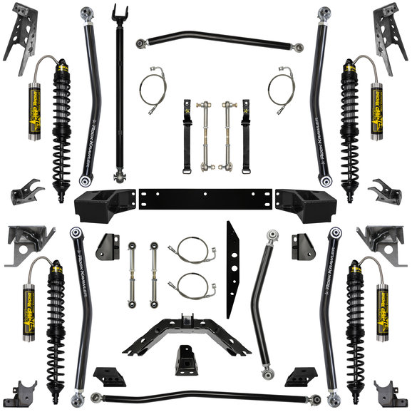 The 3.5 Rock Runner System is the ultimate trail suspension for Wrangler JK owners period! The steering geometry has been engineered to provide you with stock on highway handling characteristics. What makes this long arm system stand out above all the rest is the Revolutionary Independent Three Link conversion front and rear. This has become a Rock Krawler Suspension trade mark. All of our Jeep Long Arm systems feature this very same design up front.