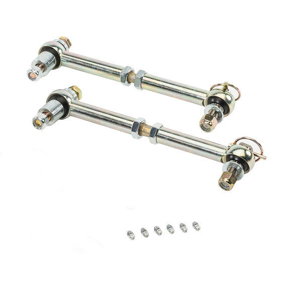 The Rock Krawler adjustable JK extended front sway bar disconnects provide ultimate adjustability & a rattle free ride! The sway bar disconnects are serviceable and rebuildable and come in a heat treated, zinc plated chromoly housing that offers years of trouble free use. The in Vehicle Double Adjustable Design works on Jeeps with 1.5" - 5.5" of Lift Heights. Injection Molded, Thermal Elastomer Bushings allow for a rattle free ride.