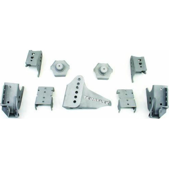 Our rear axle bracket kit includes all brackets necessary for a complete JK rear end. The brackets are precision laser cut from 3/16 steel and accurately formed to ensure proper positioning. Track Bar Mount features positions for 0-6" lift and control arm mount positions for fine tuning suspension geometry.