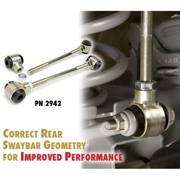 In addition to improving rear swaybar performance, Adjustable End Links also eliminate contact between the swaybar and axle housing at full suspension droop. This irritating problem on lifted vehicles is rarely addressed by other suspension manufacturers.