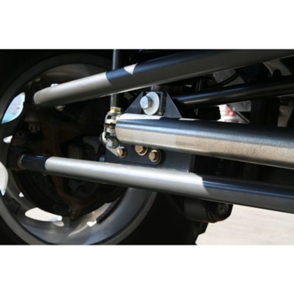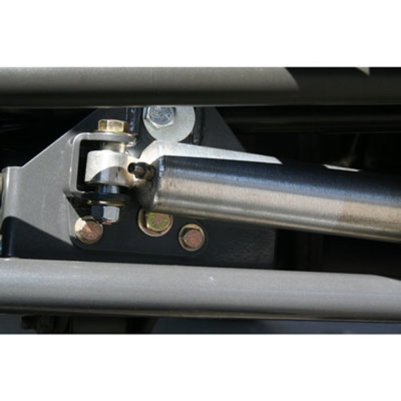 Designed to be used with or without the Synergy Suspension Front Track Bar Brackets. Designed to relocate a Fox Racing/Synergy Suspension steering stabilizer up and out of harms way on a JK. The kit includes grade 8 hardware and is easily installed using basic hand tools. Manufactured from high strength 3/16" steel & powder coated for corrosion resistance. 100% bolt on components assures an easy, trouble free installation with the use of basic hand tools.