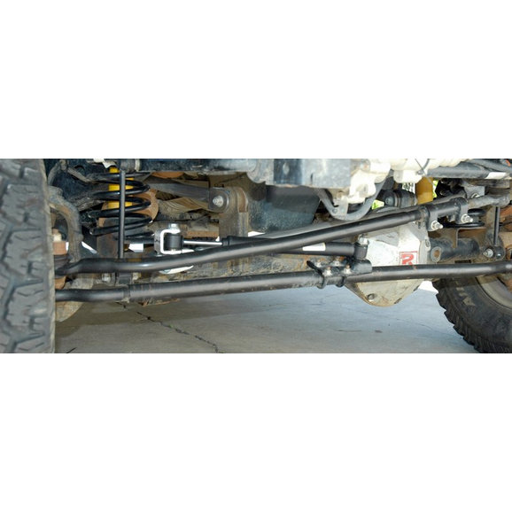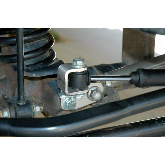 In the Factory location, the steering stabilizer is prone to damage. The Dominion OffRoad Bracket safely relocates the steering stabilizer out of harms way.