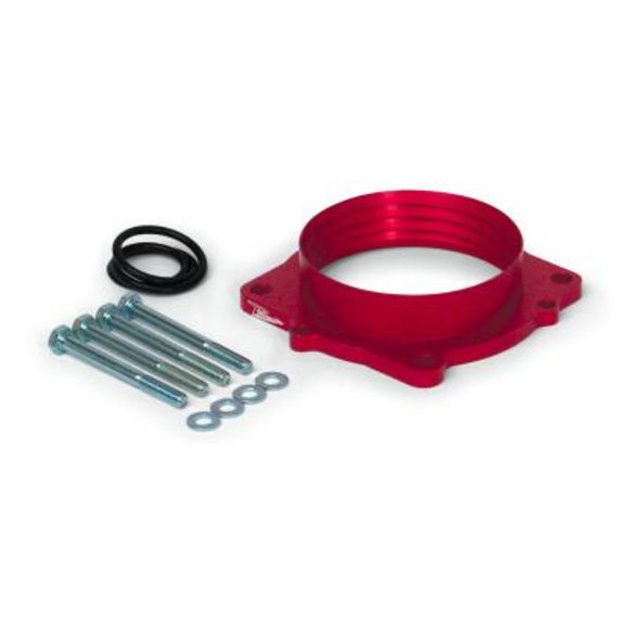 The PowerAid Throttle Body Spacers from AIRAID Premium Filter Company are designed to greatly improve the low-end torque and horsepower characteristics of your engine. PowerAid accomplishes this by spacing the throttle body one inch and adding a dyno-proven Helix style bore(s). As the intake air passes through the spacer, the Helix bore creates a vortex action that improves atomization creating a more complete combustion and an efficiently burning engine. The results are improved drivability and increased fuel efficiency. The PowerAid spacer is 50 state legal, will not void your new car warranty, and can be used with any grade fuel.