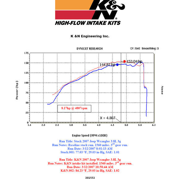 Estimated Horsepower Gain: 8.17 HP @ 4807 RPM