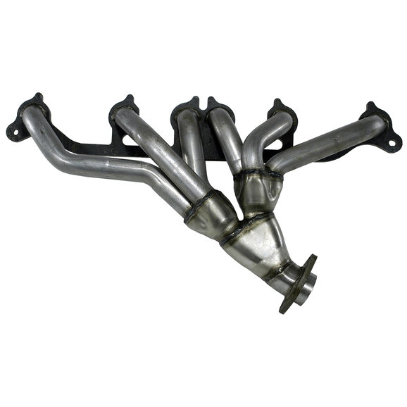 Improve exhaust flow and engine response or replace cracked and brittle originals with one of these extreme value exhaust headers. Fits '91-99 Wrangler 4.0L engines without modifications. Available in three great finishes. Choose show polished 304 stainless steel or unpolished 409 stainless. Kits include header, flange gasket, hardware and front pipe flange gasket. Ask your sales person about adding a cat-back kit from our vast selection to complete your exhaust system.