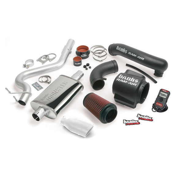The Banks Stinger® exhaust system is an engineered power system for Jeep street and off-road applications. With its free-breathing Banks Ram-Air® Intake and Monster® Exhaust upgrades, Stinger liberates 4.0L Jeeps from airflow restrictions, improving engine efficiency, durability and fuel economy while increasing power. The exhaust note is authoritative, yet civil, and includes a stainless tailpipe tip in either chrome or black. The included Banks AutoMind programmer comes "ready to run" with pre-loaded power, with towing, sport, or economy settings right out of the box...and right for the job at hand! Its calibrations were developed with power and increased MPG in mind. The AutoMind can also display a host of critical engine functions and provides "service technician" diagnostic capabilities with its ability to scan and clear vehicle trouble codes.