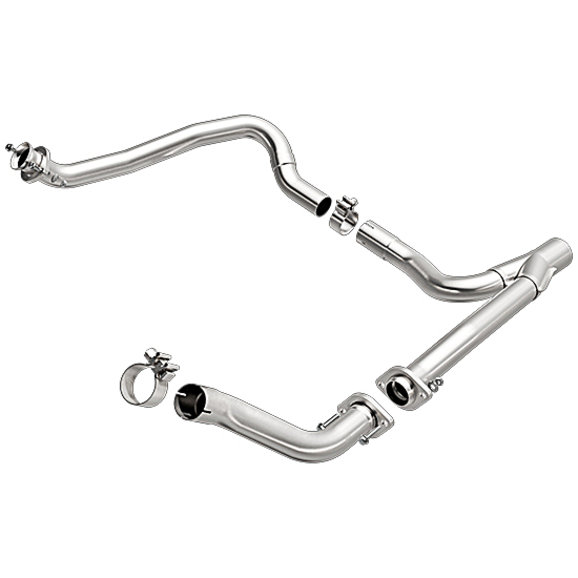 MagnaFlows Y-Pipe Assembly is designed to allow the proper exhaust to drive shaft clearance on lifted vehicles while still maintaining the proper equal length mid pipes. Tubing diameter on pipes has been enlarged to compensate for the factory "loop" section.