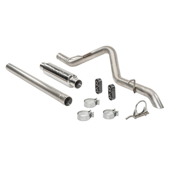 Departure angles. We all think we have that stuff down perfectly, don't we? And yet here we are coming off that obstacle and - smack. Crumpled exhaust pipe. Or worse. Well, with a Pypes Performance High Clearance Cat-Back System, worrying about departure angles can be a thing of the past. At least for your exhaust kit. Pypes carefully crafts this kit to play nice with just about all aftermarket suspension systems, and the exhaust's rear exit sits high and out of the way. Pypes also knows you want a kit that performs as well as it looks, so they made this High Clearance Cat Back system from mandrel bent 304 stainless tubing that is 95 percent straight, so it is not going to wear out, or cause problems when you least expect, while providing better exhaust flow and improving gas mileage. Then, to top off the kit, Pypes includes its case welded M-80 Race Pro muffler that won't rattle and will give you that aggressive, but not overpowering, sound note.