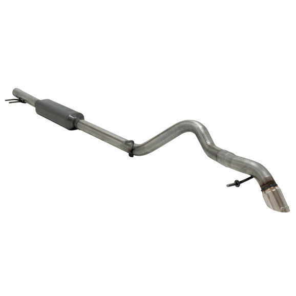 Flowmasters new American Thunder cat-back system for the Jeep Wrangler JK is perfect for the person looking for maximum performance and ground clearance from their exhaust system. This 2.50 system features a 409S stainless steel mandrel bent tailpipe with a 3.00 polished stainless steel tip and fits both 2 and 4 door models with the 3.6L and 3.8L V6 engines. This system replaces the factory transverse muffler and relocates the Super HP-2 muffler behind the factory catalytic converter, providing a moderate to aggressive sound level. This relocation allows for better ground clearance when driving off-road. Because the tailpipe is tucked up so high, an aftermarket metal bumper is recommended. The exhaust system is manufactured in the USA and is covered by Flowmaster's Lifetime Limited Warranty. Designed for an easy fit, this system includes all necessary parts and hardware for installation