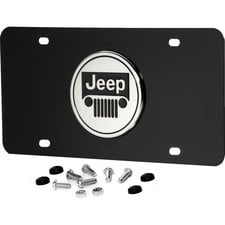 Laser etched logos on Brushed Stainless Steel Plates and Black Powder-Coated Plates. Plates include hardware and matching screw caps to conceal unsightly hardware