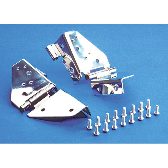 Highly polished stainless steel Windshield Hinge pair is pre-drilled and threaded for side-view mirror mountings Fits '76-'86 CJs & Wranglers from '87-'95 YJ Wrangler. Has holes for CJ factory style mirrors.