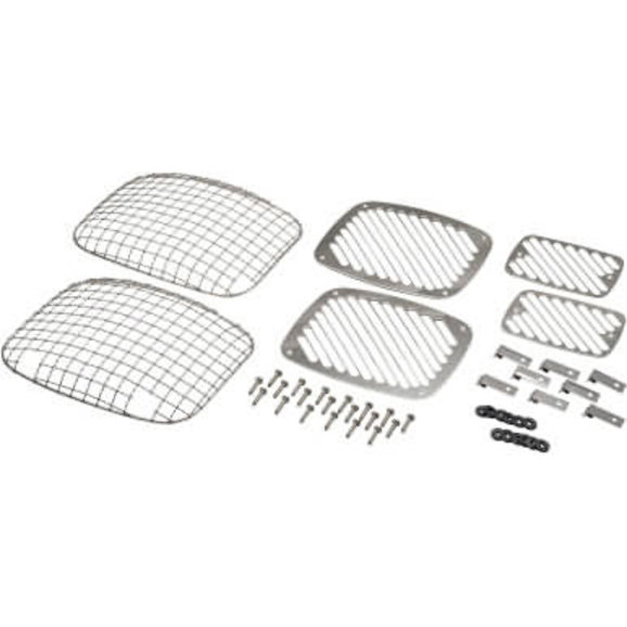 These stainless steel mesh stone guards are a great addition for any Jeep. Stainless steel hardware is included in each kit. Kentrol stainless steel accessories, whether you buy the polished or powder-coated black ones, begin with 304 and 410 stainless steel sheets. Uitilizing their own proprietary tooling and engineered drawings, Kentrol's stainless accessories are than stampled, drilled, machined, welded and either polished or powder-coated to achieve the finest fit and finish possible. Kentrol delivers quality and the finest accessories for your money. Stainless Steel Wire Mesh Guard Set (6) Pcs.