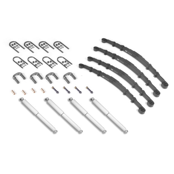 These great Master Rebuild Kits includes everything you need to rebuild the suspension on your Jeep. These kits come stocked with front and rear leaf springs, shocks, U-bolts, bushings, spring bolts, and shackles (where applicable). These suspension kits are covered by a limited three year manufacturer's warranty.