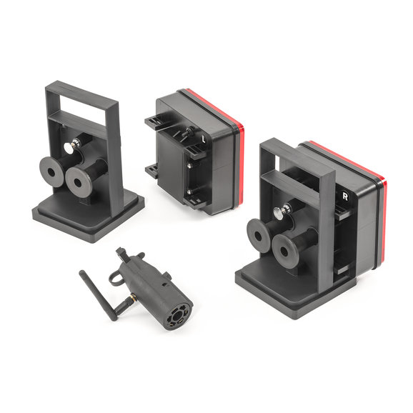These wireless towing lights from Pilot Automotive use a detachable antenna on you trailer connector to send a signal that triggers your tow lights. Designed to work on a 4 way flat or 7 pin round connector to your tow vehicle with no need to wire into your trailer or tap into wiring on the vehicle you are towing. The wireless design eliminates the hassle of running cords every time you tow. The stop lights work with 6 AAA batteries and have a durable polycarbonate base and lens housing.