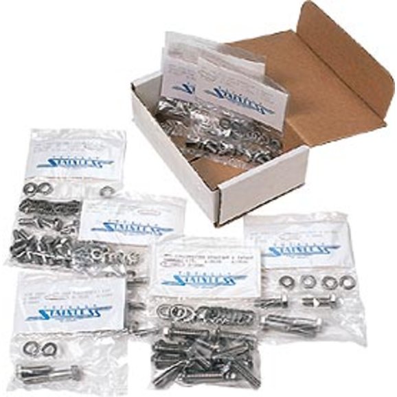 Complete exterior engine bolt kits for the most popular original equipment Jeep engines. All correct hardware for the distributor, fuel pump, intake, oil pan, thermostat, timing cover, water pump and valve covers are included. Button Heads are for a high-tech no nonsense look. Choose Indented Hex Heads for original equipment restorations. Hex Heads are inexpensive and yet the easiest to custom polish.