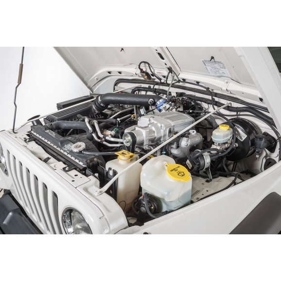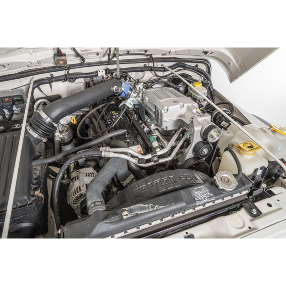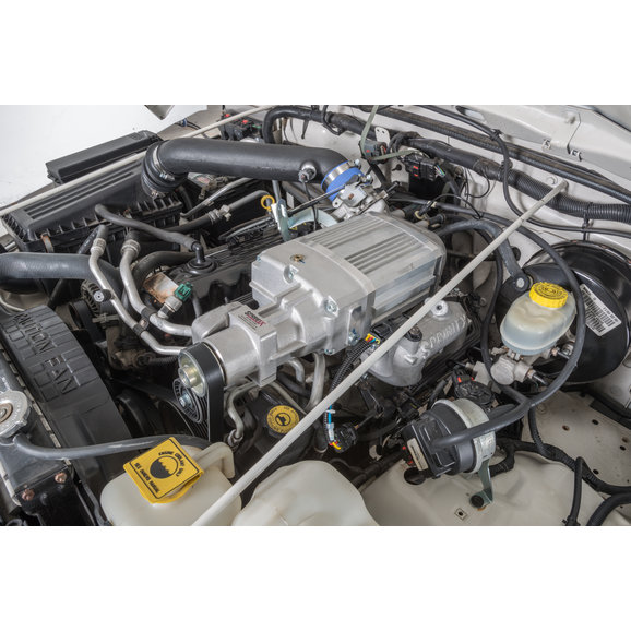 The Sprintex Supercharger System for Wrangler TJ is an easy, completely bolt-on, self-contained oiling system installation with no need for external oil lines. 42% more horsepower; 152 HP stock to 216 HP supercharged and 34% more torque; 193 ft/lb stock to 259 ft/lb supercharged. Dedicated turing and support by Diablo Intune I1000. Engineered and tested to OEM specifications. Uses stock air filter housing. Completely reversible. High-quality materials and finishes. S5-210 ultra-efficient twin screw compressor for more power at lower RPM. Performance & Reliability may vary on vehicle condition and modifications, etc.