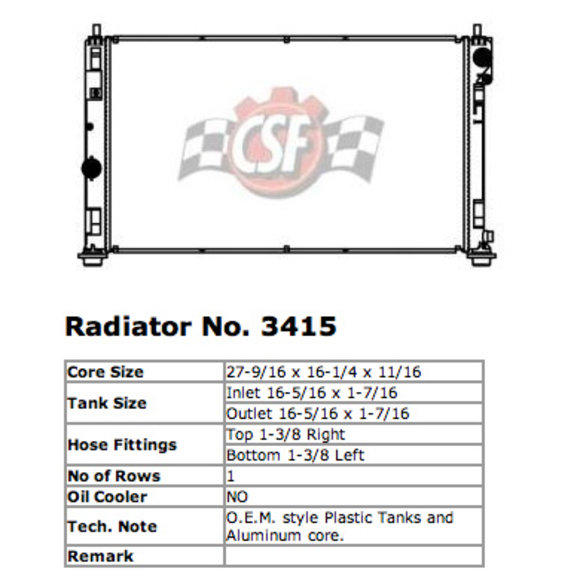 CSF 3415 OE Replacement Radiator with Plastic Tank & Aluminum Core for 07-16 Jeep Compass & 07-17 Patriot MK with 2.0L/2.4L