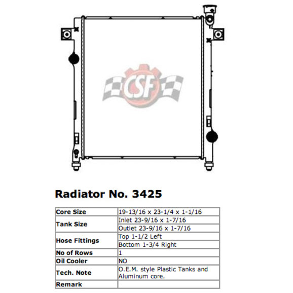 CSF 3425 OE Replacement Radiator with Plastic Tank & Aluminum Core for 08-10 Jeep Liberty KK with 3.7L