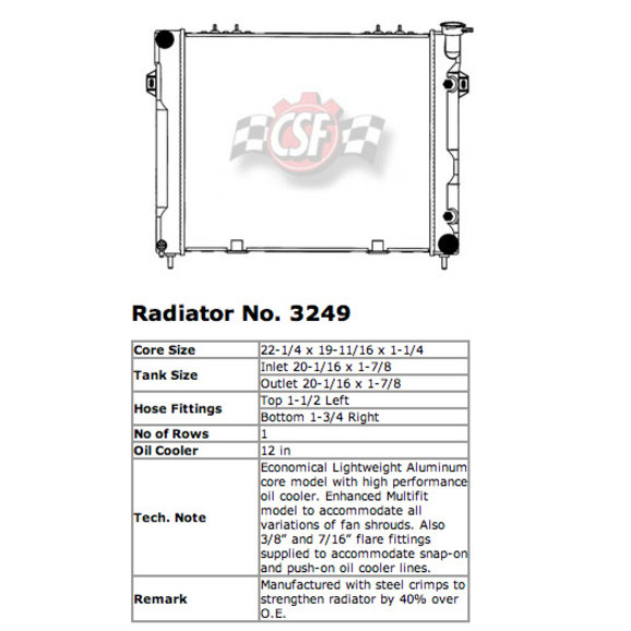 CSF 3249 OE Replacement Radiator with Plastic Tank & Aluminum Core for 93-98 Jeep Grand Cherokee ZJ with 5.2L