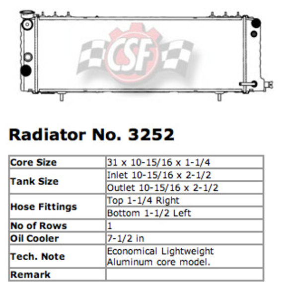 CSF 3252 OE Replacement Radiator with Plastic Tank & Aluminum Core for 91-99 Jeep Cherokee XJ with 4.0L & Right Hand Drive