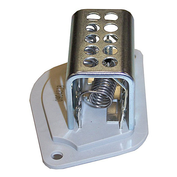 With a new Blower Motor Resistor from Crown Automotive you can restore the fan speeds to your heating system. If you are noticing that certain speeds work while others do not, then your resistor has developed dead spots that are not allowing the current to flow properly and your switch cannot react. Located under the glove box on the passenger side behind a plastic cover, the blower motor resistor is positioned in the heater box with a factory wire connection to it. Installation is completed with simple hand tools, the hardest part is reaching it.