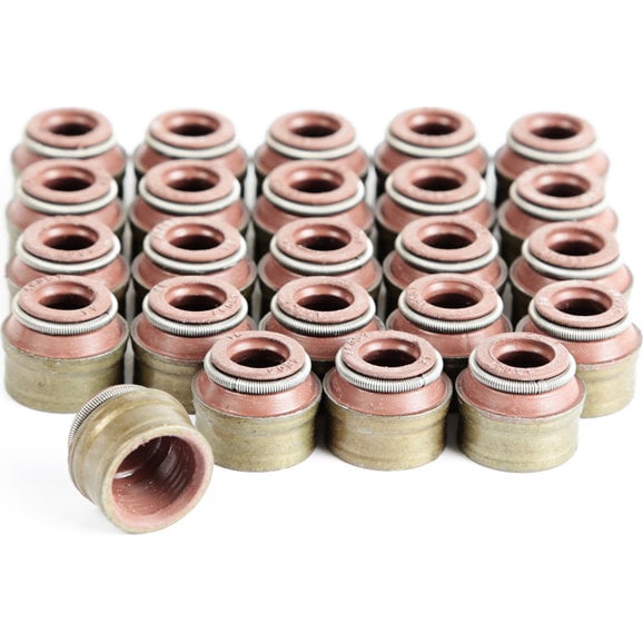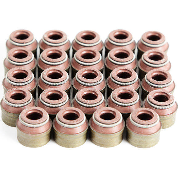 Oil fouled spark plugs or that dreaded blue smoke coming out of the tail pipe could be a sign of failing valve stem seals. Valve stem seals provide a controlled leak of oil to allow the valve stem to be lubricated as it slides in the valve guide. The amount of oil that passes by the valve stem seal must be precisely controlled. Too little oil causes stem and guide wear. Too much oil causes carbon buildup, leading to valve seat damage and other issues. This Omix-ADA set of complete valve stem seals for the 3.6L engine is a direct factory fit replacement.
